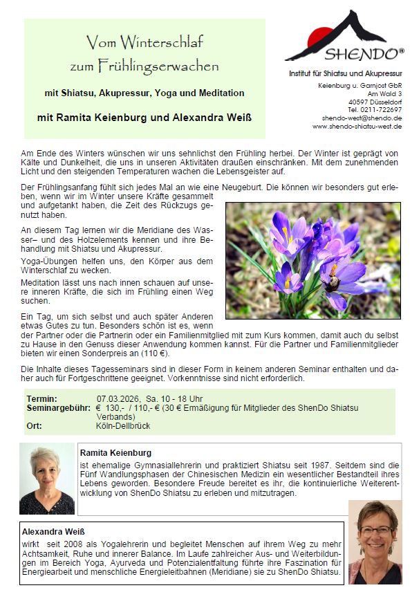 Wir wirken in den Wandlungsphasen vom Wasser- (Winter) ins Holzelement (Frühling). Genieße das Erwachen aus dem Winterschlaf und beginne in all Deinen Farben aufzublühen.